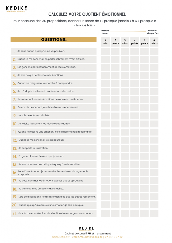Evaluer votre niveau d’intelligence émotionnelle en passant notre auto-diagnostic.